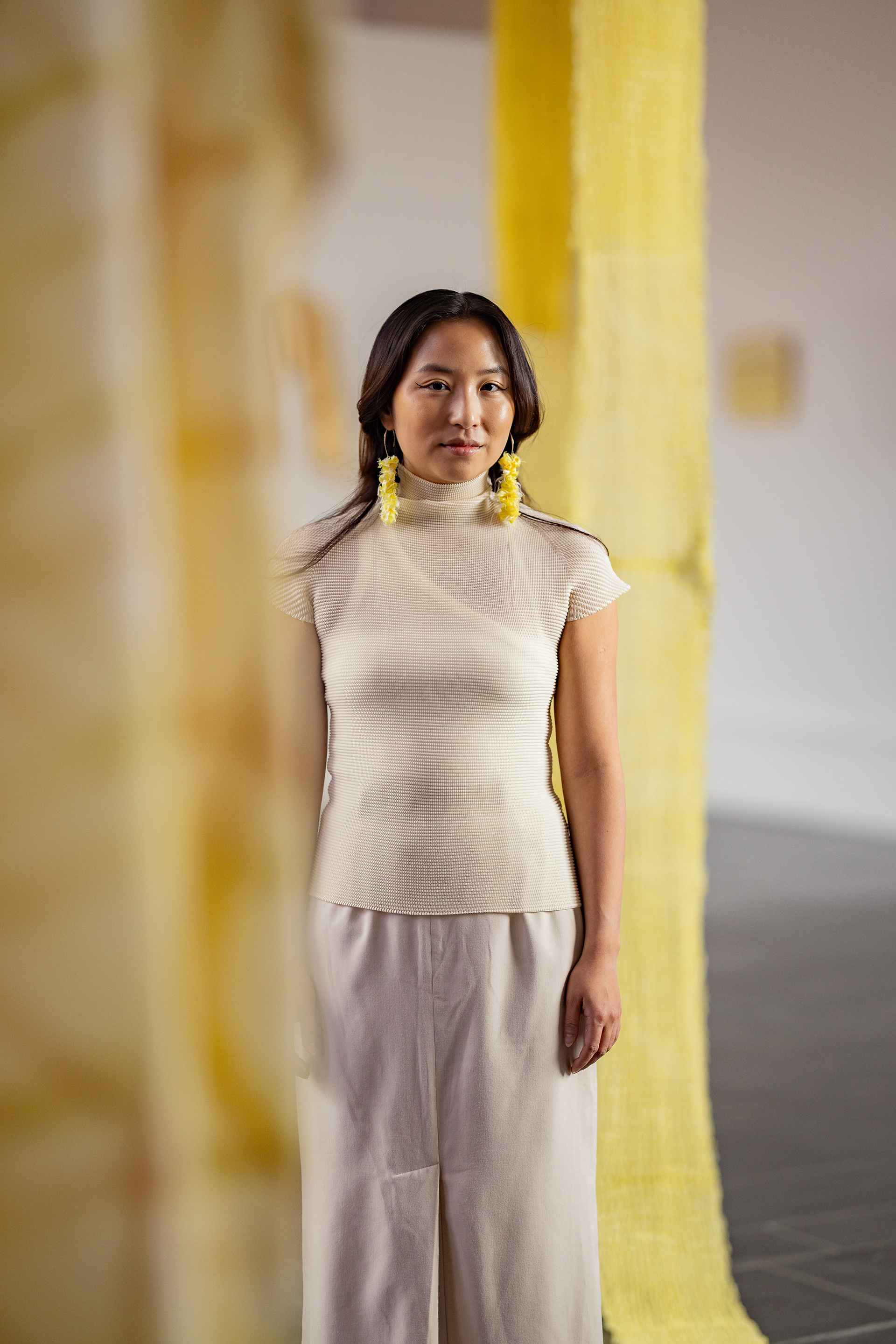 Her work draws from her Vietnamese heritage and is shaped by Nordic and Asian cultural influences. Central to her practice is the color yellow, used to explore identity, belonging, spirituality, and embodied experience. Yellow serves as a visual manifestation of healing, both personally and through the act of making.